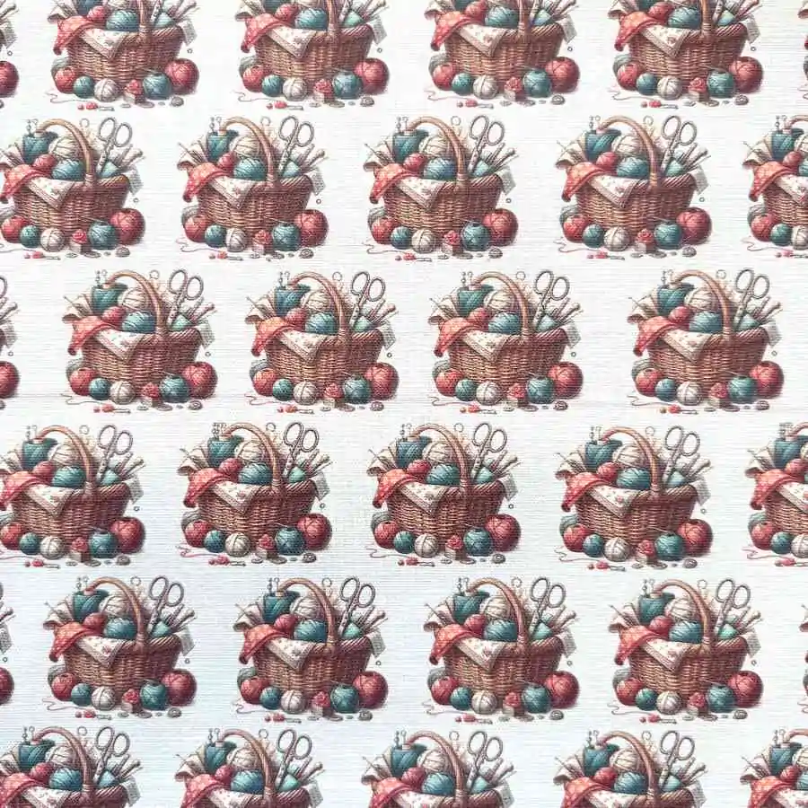 Canvas med print – Kurv og garnnøgler