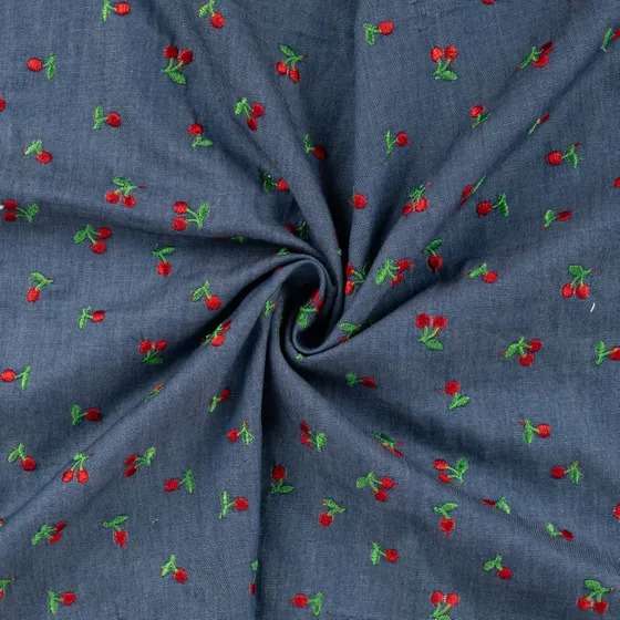Chambray Broderi Kirsebær Denim 100% Bomuld