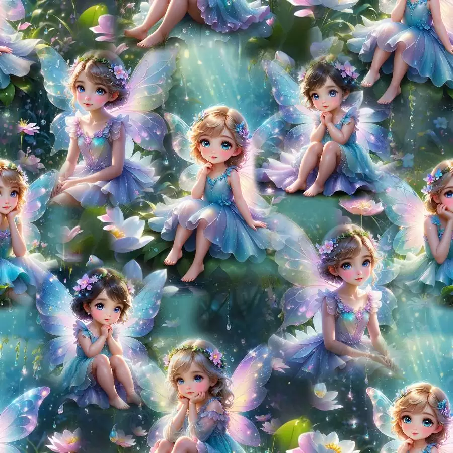 Jersey print med søde feer er i en super god kvalitet. Kvaliteten på stoffet er bomuld 95% og lycra 5%