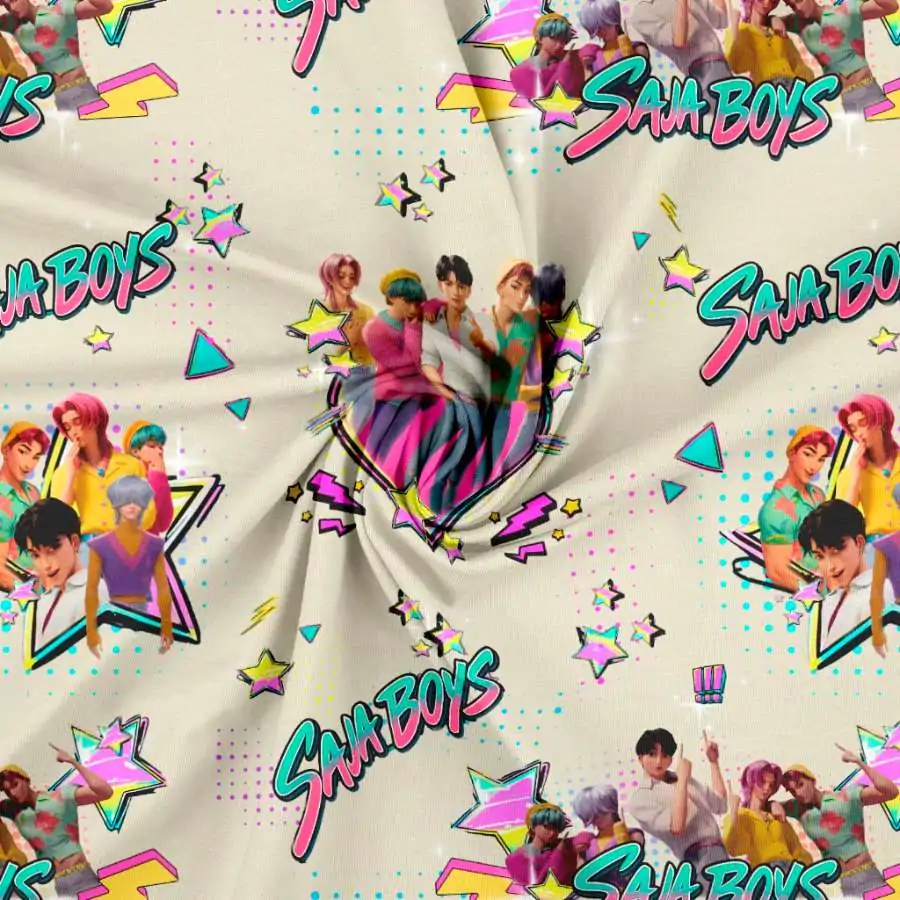 Jersey print med K-POP drenge – beige, er i en super god kvalitet. Kvaliteten på stoffet er bomuld 95% og lycra 5%