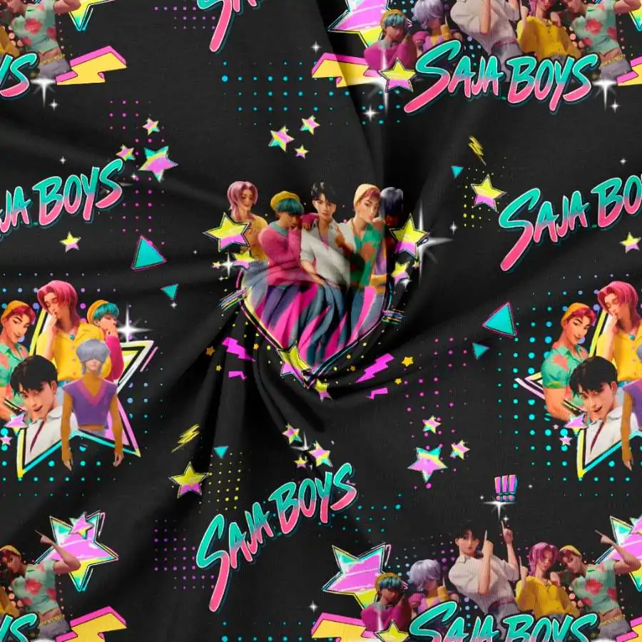 Jersey print med K-POP drenge – sort, er i en super god kvalitet. Kvaliteten på stoffet er bomuld 95% og lycra 5%