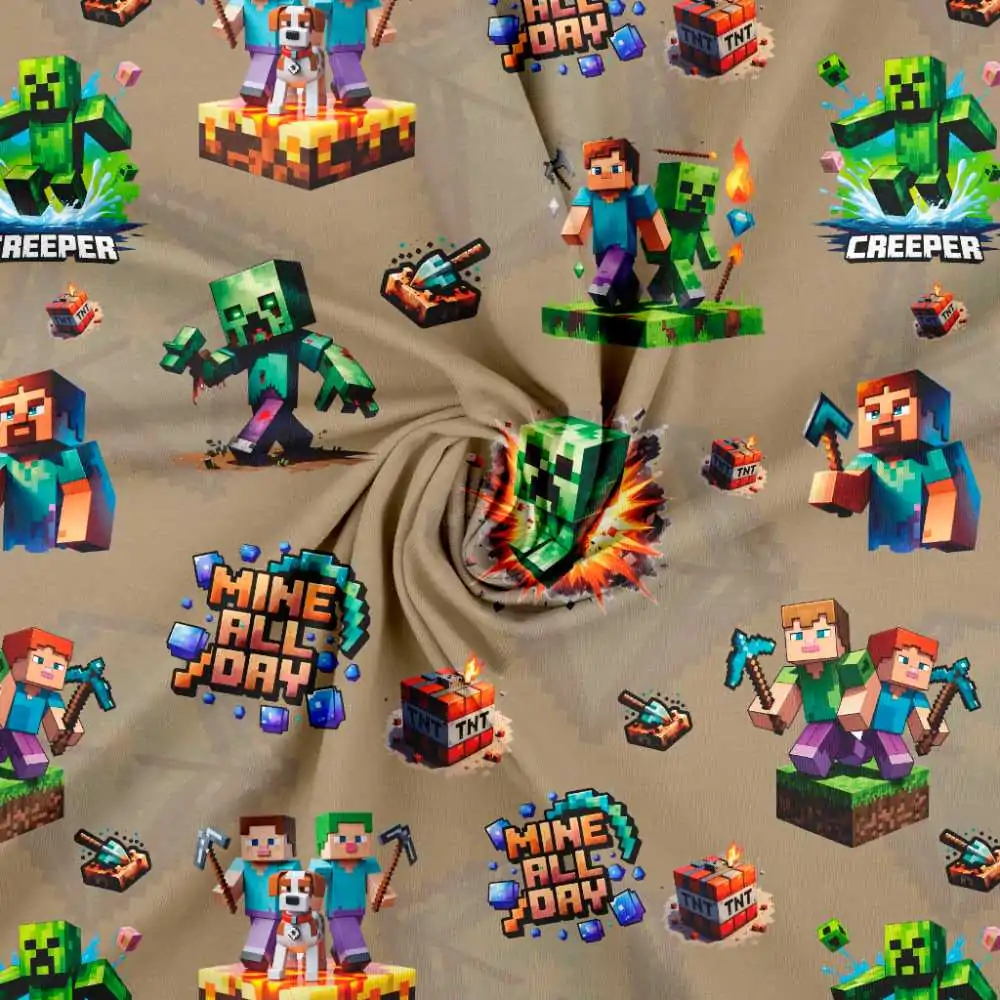 Jersey print med pixel tema – sand, er i en super god kvalitet. Kvaliteten på stoffet er bomuld 95% og lycra 5%