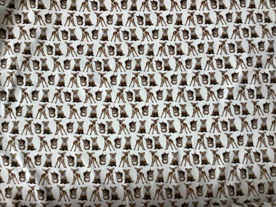 Jersey Print – Skovens Dyr, er i en super god kvalitet. Kvaliteten på stoffet er bomuld 95% og lycra 5%