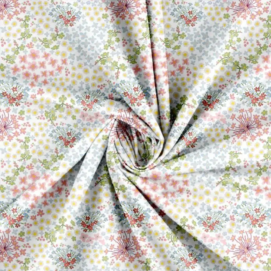 Patchwork stof med flotte blomster – multi 2, er et tæt vævet materiale i 100% bomuld.