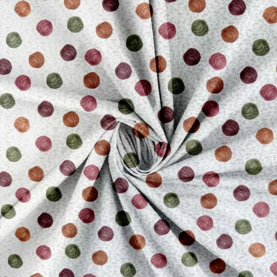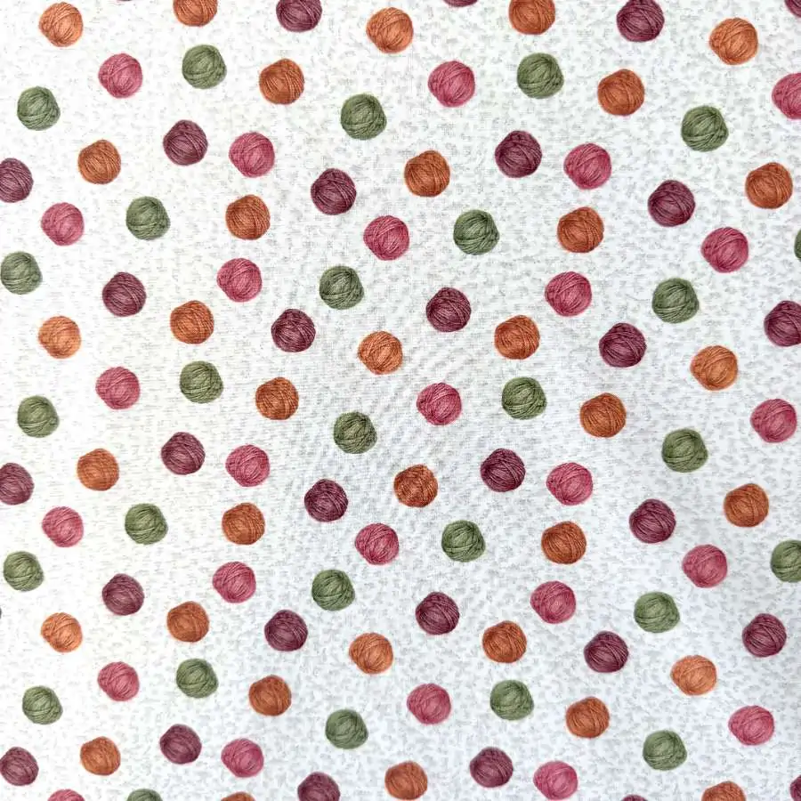 Patchwork stof – Runde garnnøgler er et tæt vævet materiale i 100% bomuld.