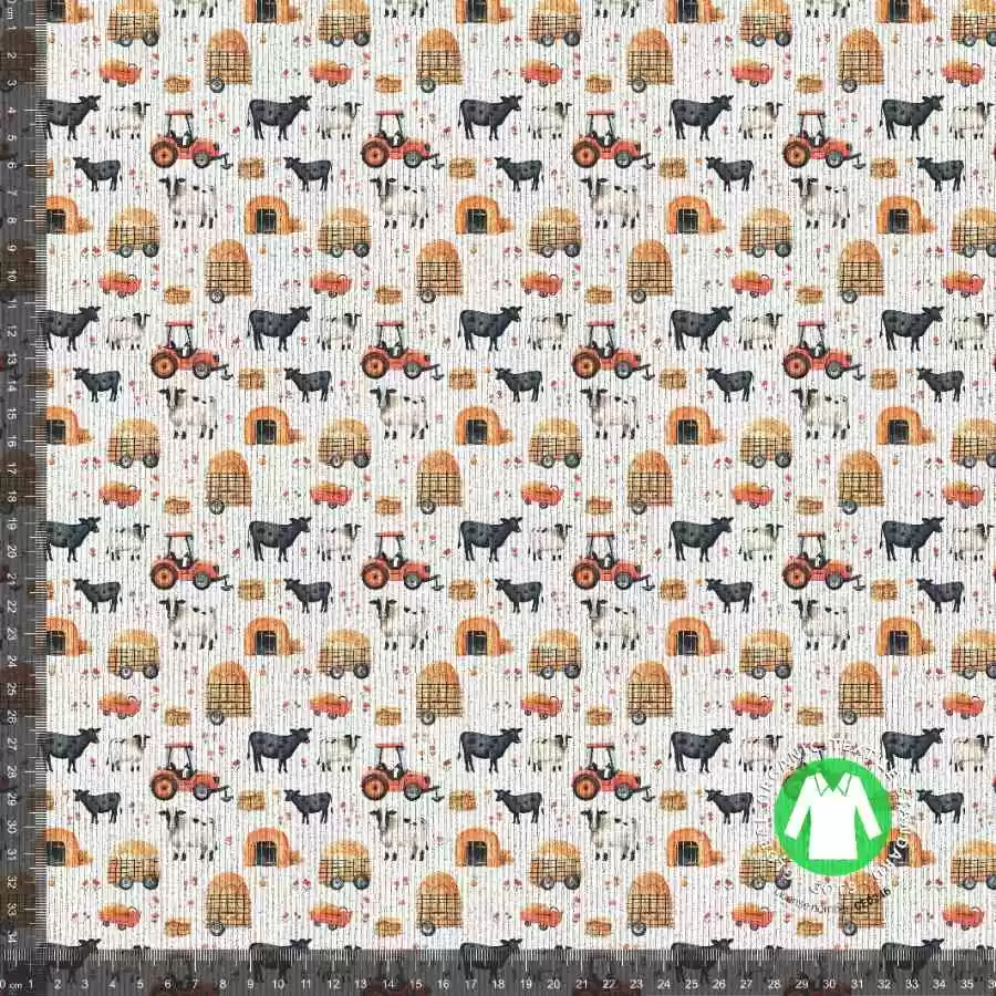 Rib jersey – Bondegårds tema 4 kan bruges af både voksne og børn. Dette er vores anden kvalitet i jersey med 1×1 rib struktur.