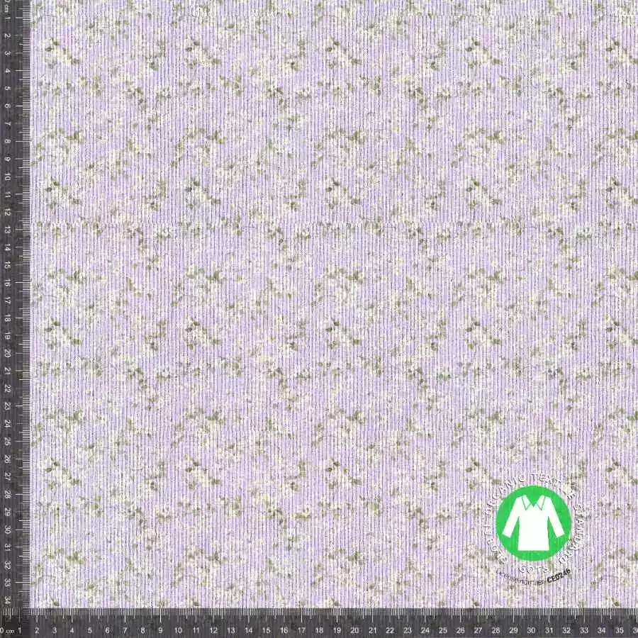 Rib jersey med små blomster – lilla kan bruges af både voksne og børn. Dette er vores anden kvalitet i jersey med 1×1 rib struktur.